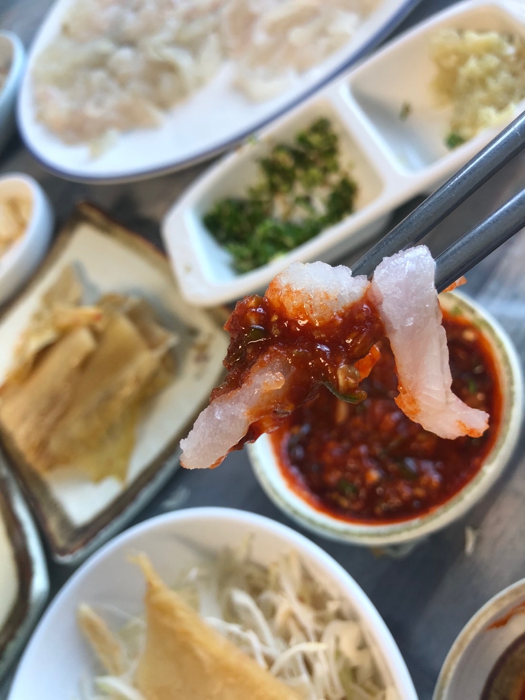 세 번째는 초장에 먹고