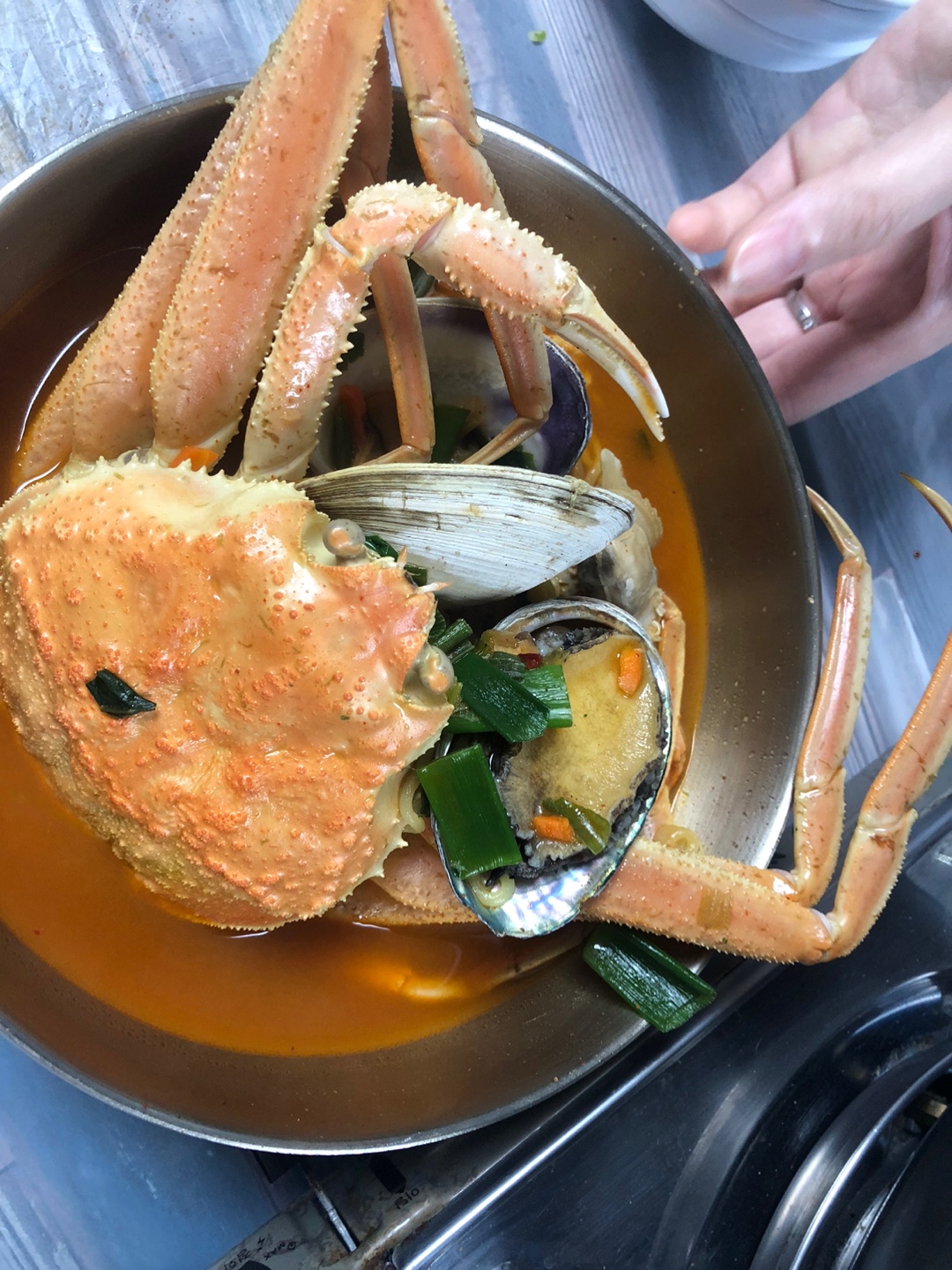 전복과 큰 백합조개가 들어있었어요