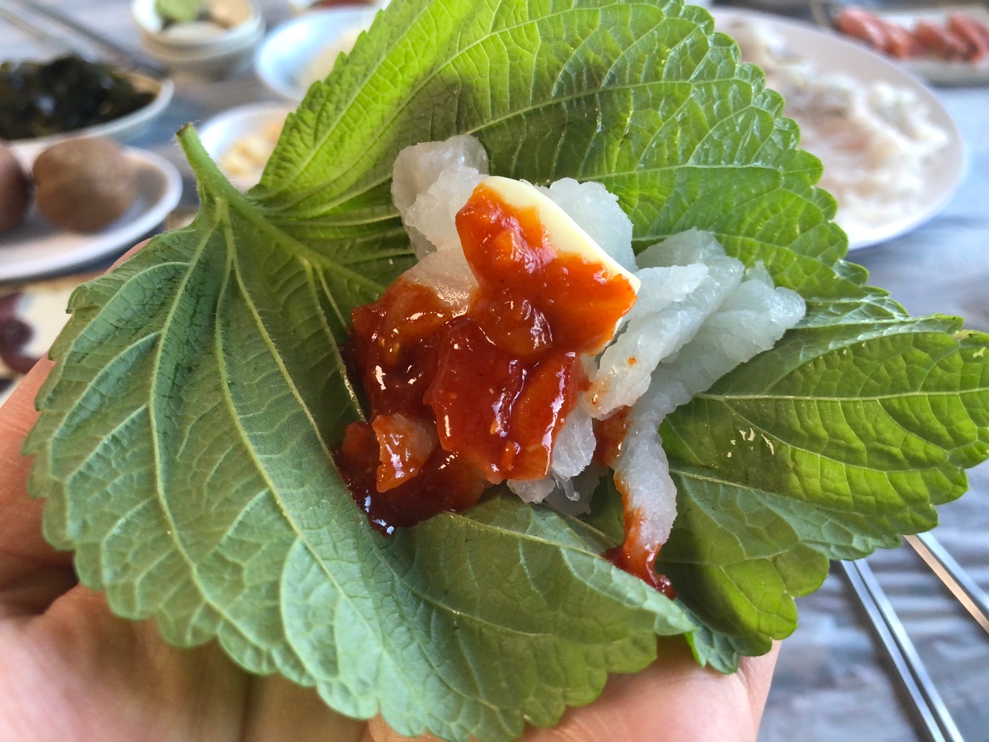 활어회 반을 쌈 싸먹고