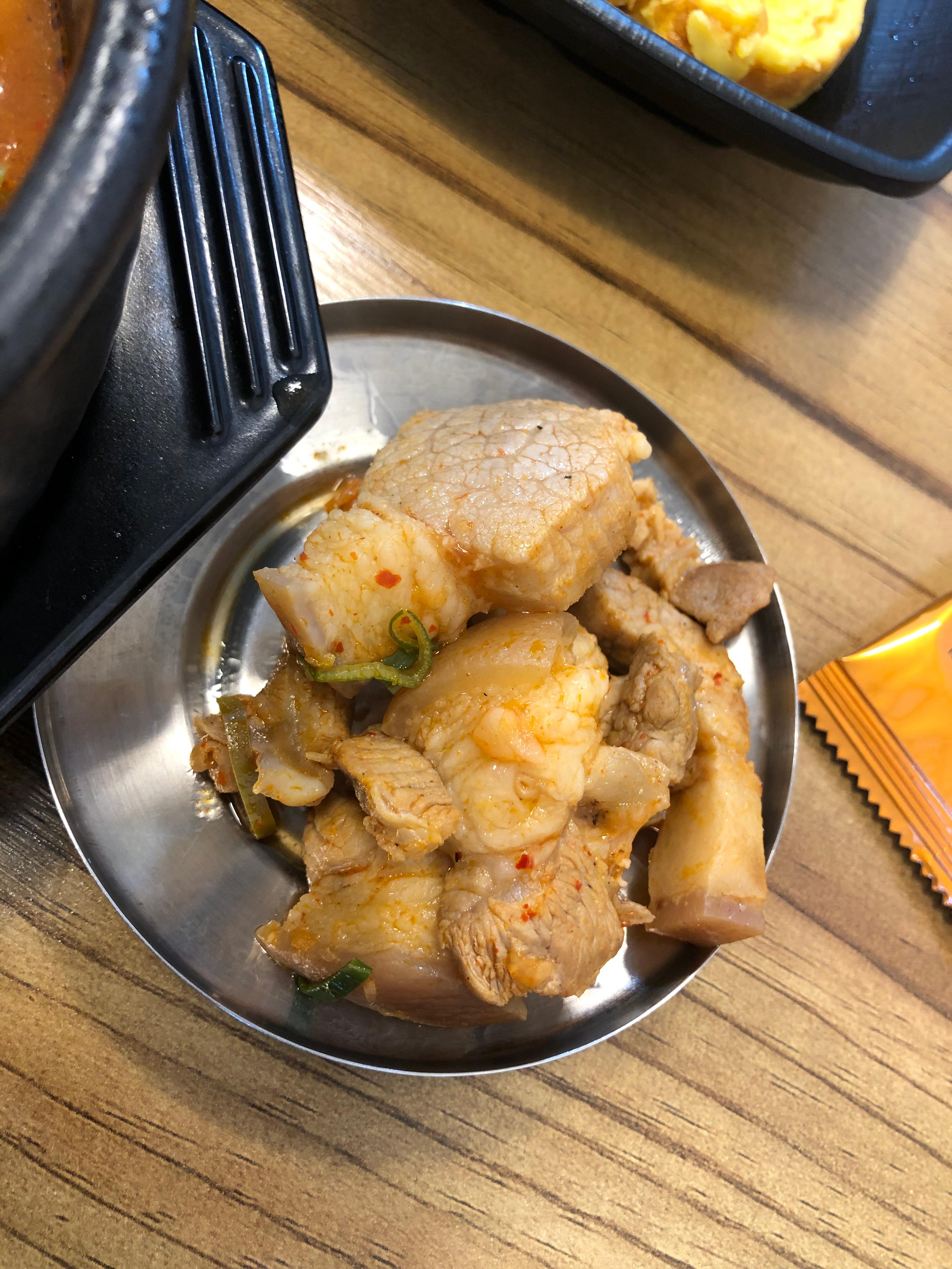 전 찌개에 든 고기는 안 먹어서 건진거..>