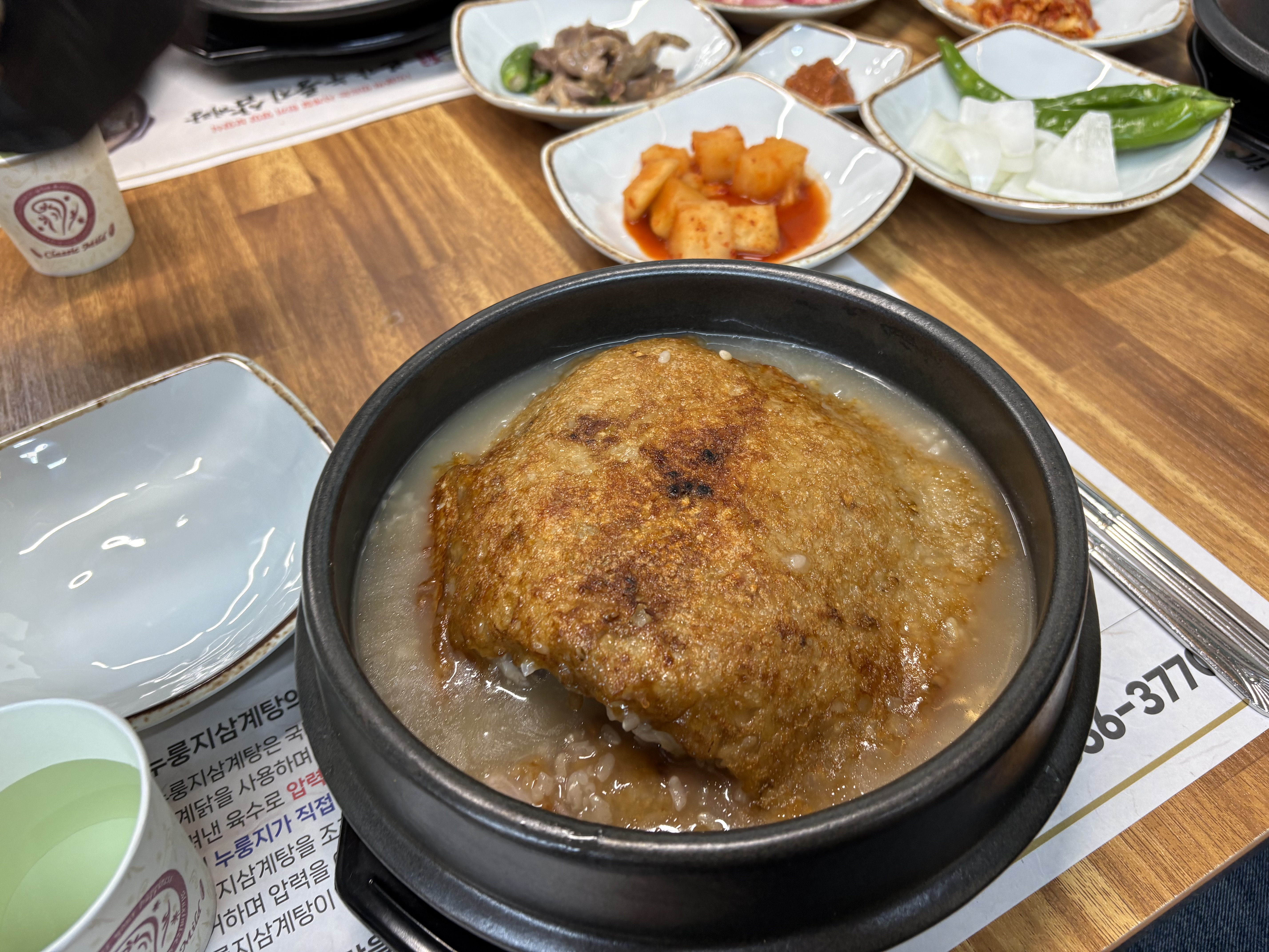 (국내산)누룽지삼계탕이 자리로 서브됐어요