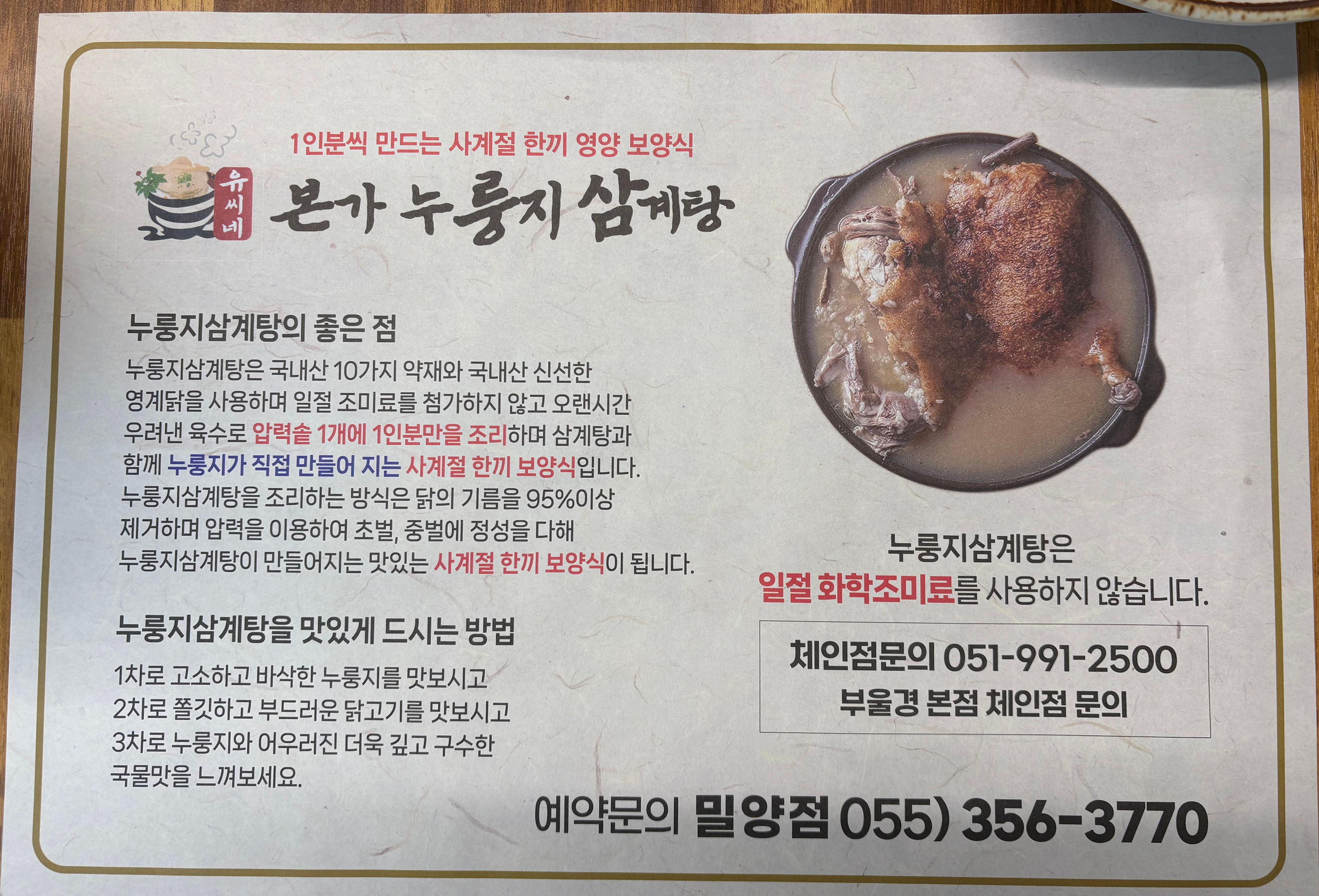 유씨네 본가 누룽지삼계탕 밀양점 방문 후기를 들고 왔어요
